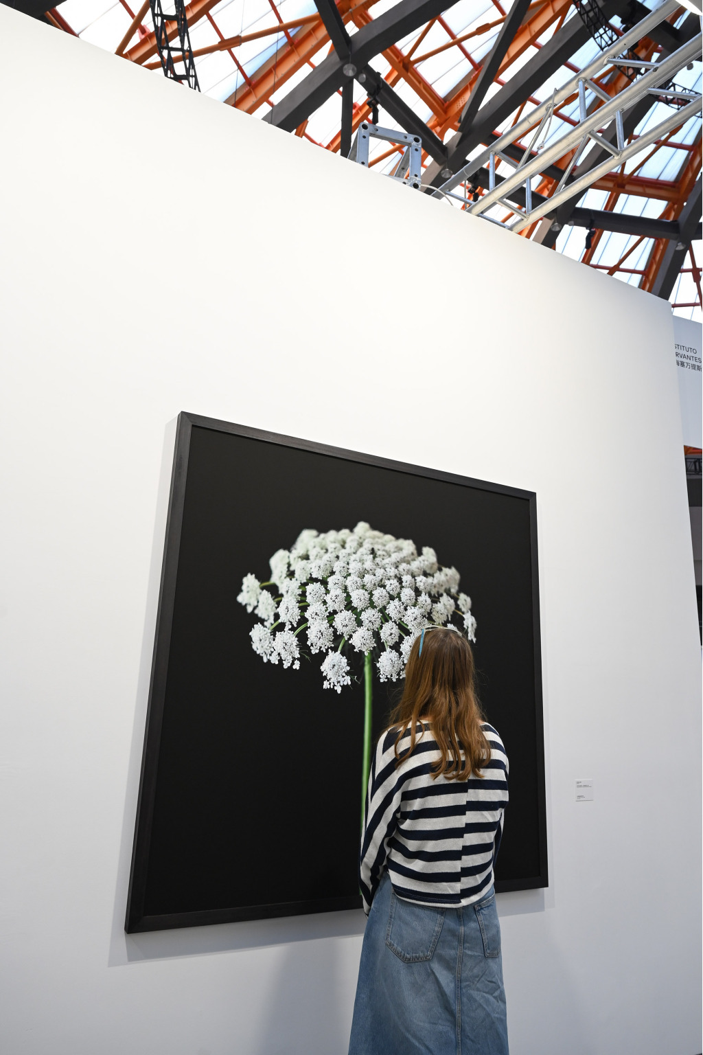西岸穹顶艺术中心上海塞万提斯学院展位,一位观众正在看作品。澎湃新闻记者 吴栋
