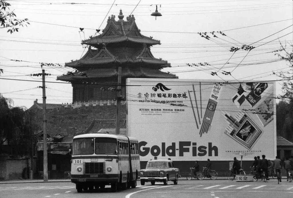 1981年,国内首个大型广告牌(金鱼牌铅笔)落成于紫禁城外一角北京。刘香成作品