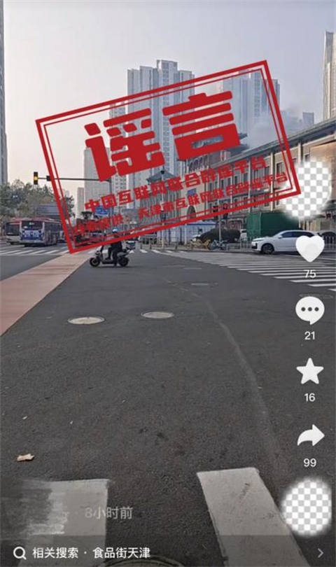 真相:11月12日上午,某网民发布一则视频信息,称天津市和平区“南市食品街发生火情”,视频画面显示有建筑物上方冒烟,引发关注。经核实,相关网传信息为谣言。真实情况为:和平区消防救援支队12日上午在南市食品街(和平区慎益大街与荣业大街交汇处)开展消防主题活动暨真烟真火无人机侦察灭火救援实战演练,并未发生火情。(来源:“天津辟谣”微信公众号)