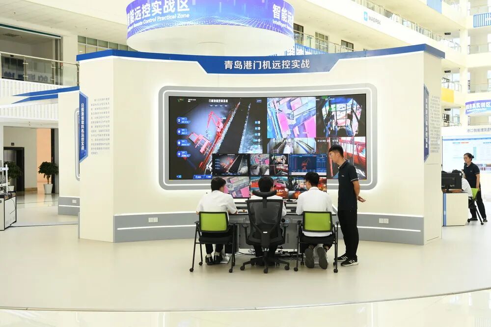 “十四五”期间,青岛港湾职业技术学院打造全域云端产教融合实训基地,学生通过智能操控平台,可实时联动山东港口青岛港全自动化码头,“无水港口”远程实景平台与虚拟仿真相辅相成,实训设施实现了从“模拟”到“仿真实战”的智慧跃迁。
