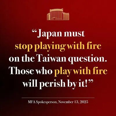 “我们正告日方,必须深刻反省历史罪责,立即停止干涉中国内政、挑衅越线的错误言行,不要在台湾问题上玩火,玩火者必自焚!”林剑强调。