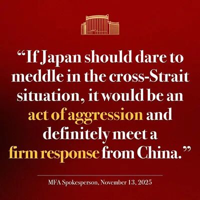外交部随后表明立场:“如日方胆敢武力介入台海局势,将构成侵略行为,中方必将迎头痛击!”