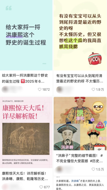 更绝的是那些营销号的标题:“实锤!康熙生父另有其人”“清朝最大秘密被揭开”“孝庄皇后与洪承畴不可不说的故事”。