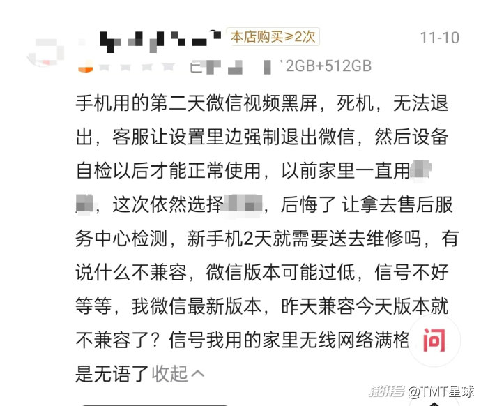 有用户购买了某国产高端旗舰机后,使用的第二天就出现了黑屏、死机、无法退出等状况,去售后检测却并未检测出问题出现的根源,而“新手机2天就需要送去维修”这种情况极大影响了用户体验。
