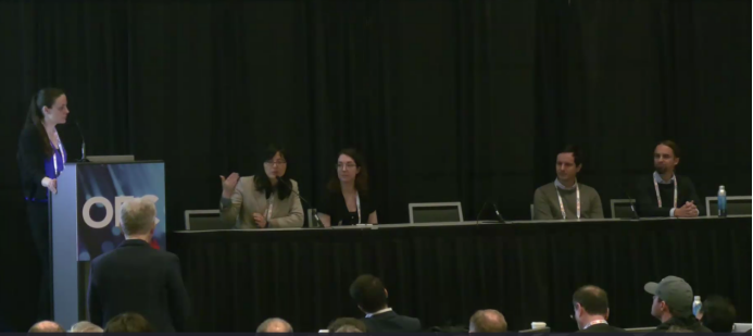 之后在2025年OFC关于空芯光纤的workshop中(图3),我作为开场演讲者,公布了46 km连续拉制的损耗0.1 dB/km的空芯光纤,这是当时全球最长的单跨空芯光纤拉制的报导。同行们都纷纷惊叹于于中国速度。在激烈的panel讨论中,立即有人问对空芯光纤量产的看法。我当时的回答是,计划今年年底实现连续拉丝100 km,明年有望实现几百km。我当时敢这么回答,是因为心里已经有量产方案了。