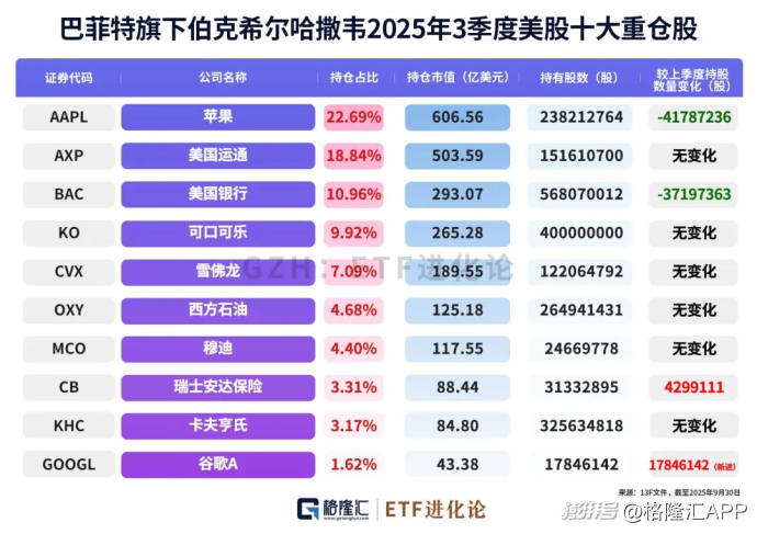 巴菲特旗下伯克希尔三季度新买进1785万股谷歌A,持仓市值约为43.4亿美元,在整体持仓中占比为1.62%,新进成为伯克希尔第十大重仓股。