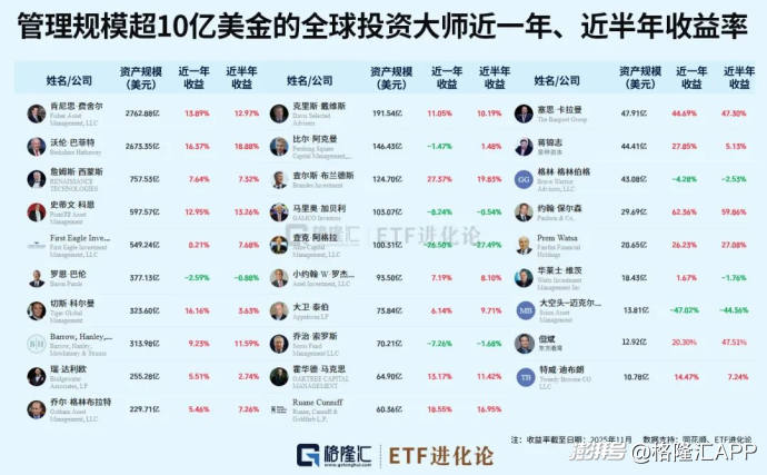 在最新公开数据中,他以近一年62.36%、近半年59.86%的收益,再次站上规模超10亿美金的全球投资大师榜首。