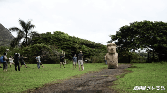 他们使用18人团队,成功地将一尊重达4.4吨的摩艾石像复制品移动了100米的距离,耗时仅40分钟。