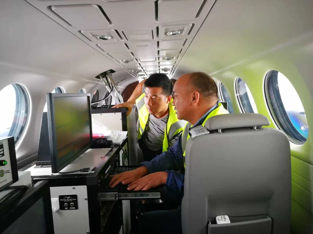 暴雨所工作人员在观测飞机上进行梅雨锋降水地基、空基联合观测试验。供图:中国气象局武汉暴雨研究所