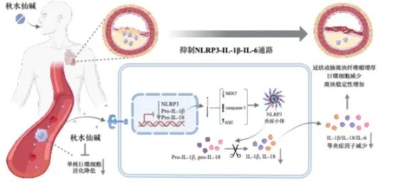 冠心病严重危害人类健康,炎症风险是导致患者发生死亡等不良事件的关键因素。我国冠心病患者的炎症风险管控不佳,主要面临两大难题:一是缺乏精准便捷的诊断指标,二是缺少安全有效的治疗策略。针对这两大难题,团队在基础研究层面,从作用机制上揭示巨噬细胞NLRP3-IL-1β-IL-6通路在冠心病炎症风险中的重要作用。在临床转化层面,团队围绕NLRP3-IL-1β-IL-6通路实现了从精准诊断到精准治疗的跨越:首次提出该通路下游的炎症标记物hsCRP≥1mg/L可作为我国冠心病患者炎症风险的诊断标准,精准识别需抗炎治疗的人群;在针对NLRP3-IL-1β-IL-6通路的药物筛选中,精准锁定秋水仙碱是目前该通路的优选抑制剂,可通过抗炎增加冠状动脉斑块纤维帽厚度,提升斑块稳定性,从而阐明其降低心血管事件的作用机制。该成果为我国冠心病炎症风险的精准管控提供了诊疗思路,有助于解决目前存在的临床难题。
