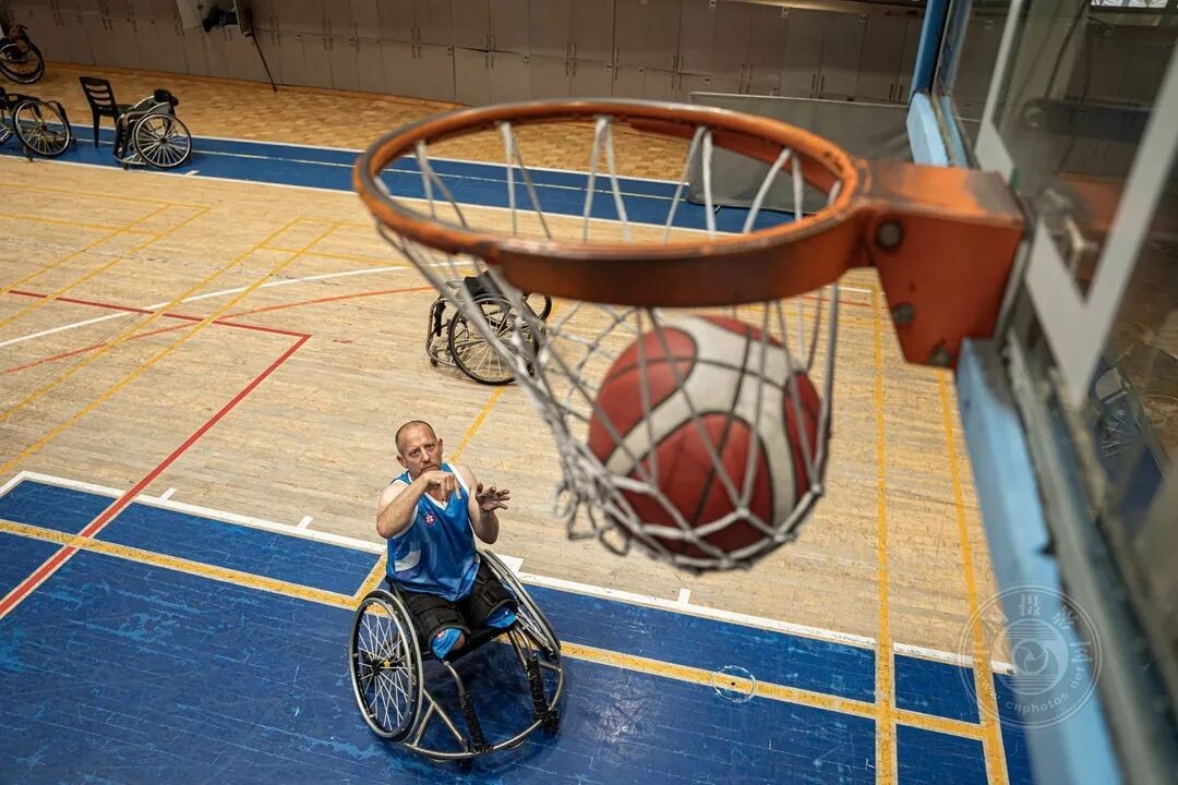 在双腿截肢、险些丧命于重伤之后,埃利沙历经一年多的康复历程。体育运动成为他的避风港——既是逃离痛苦与绝望的出口,也是专注于自身能力而非沉溺于缺陷的方式。照片定格了他篮球训练中的瞬间,正全力投篮。