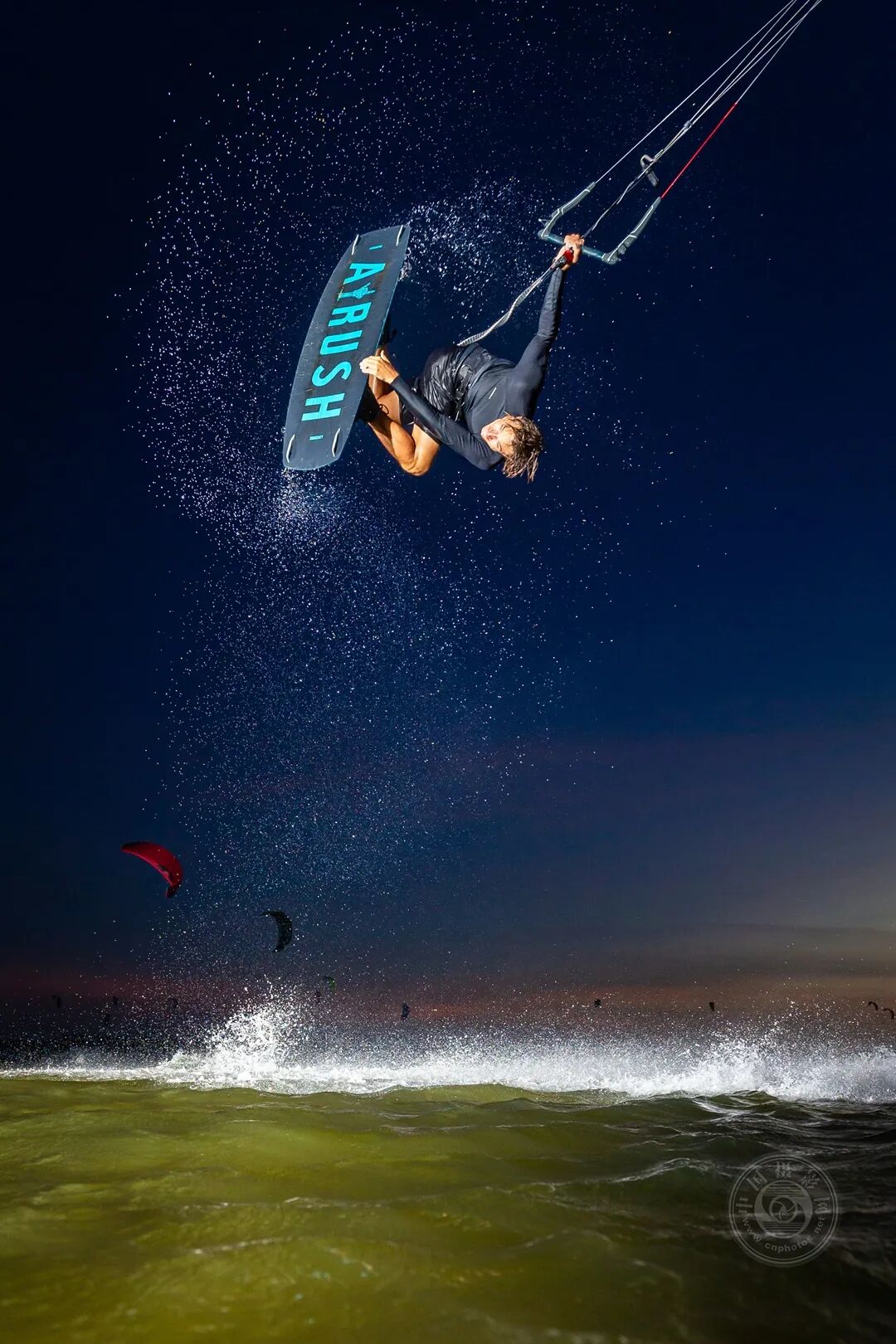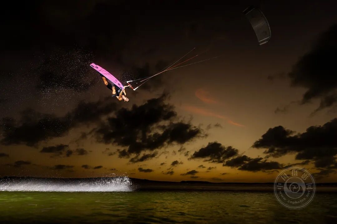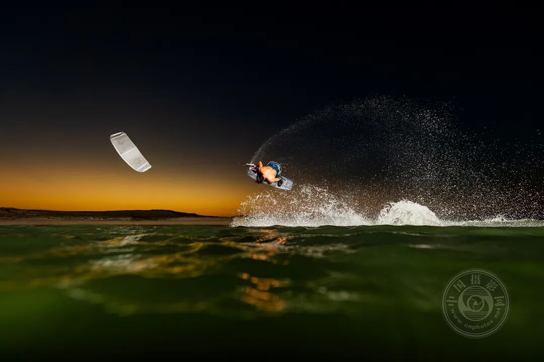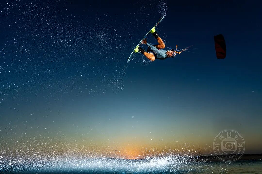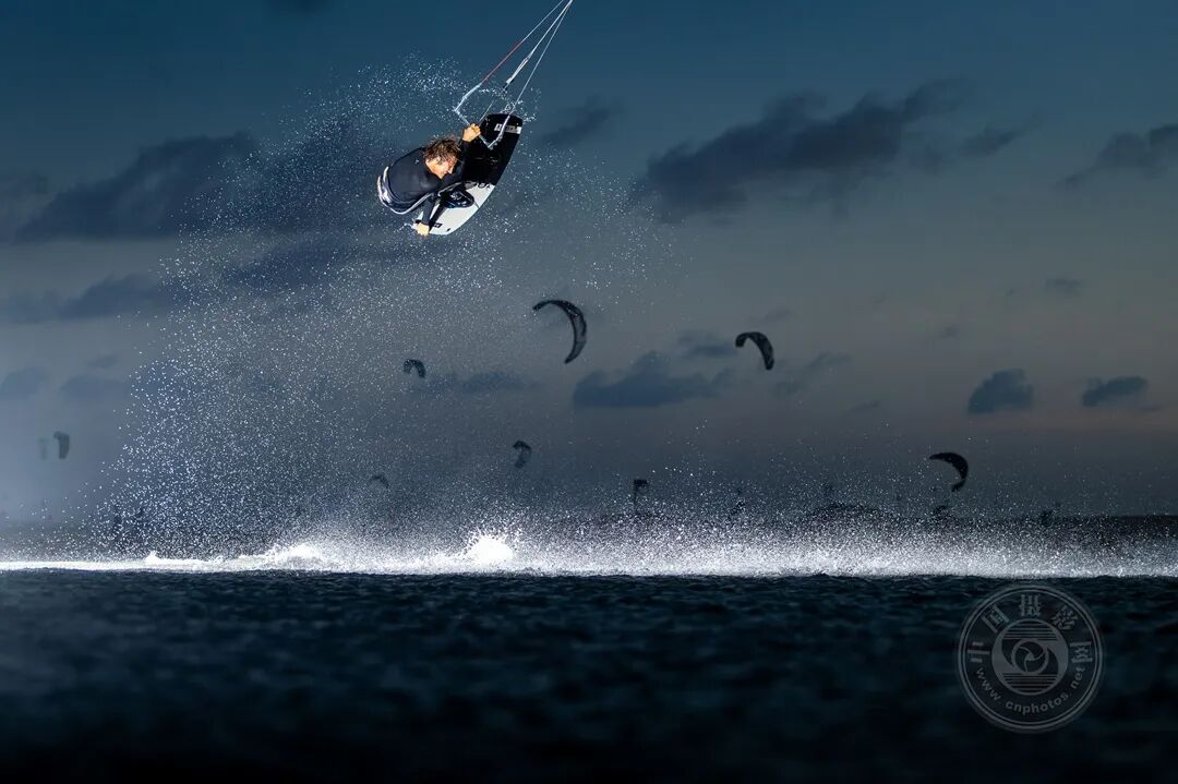 拍摄风筝冲浪不仅在于定格动作瞬间,更在于将能量、动态与环境熔铸于单帧影像。完美的风力不仅是冲浪者的必需,更是摄影师的关键要素——它能让拍摄持续进行直至日落时分。在这个领域最令人兴奋的工具之一是人工照明。在白昼使用闪光灯看似违背直觉,但运用得当便能将高速运动升华为艺术杰作:逆光飞溅的水花凝成晶体,骑手从背景中剥离,以超现实的清晰度跃然眼前。