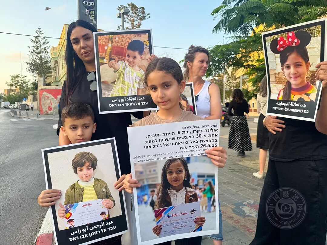 每周在雅法(Jaffa)——这座犹太与阿拉伯社区并存的的多元城市——人们聚集在格林豪斯旁进行两小时抗议。这座曾是以色列国防军法庭的建筑,如今已成为哀思之墙,墙面覆盖着加沙遇难儿童的照片。战争中失去亲人的巴勒斯坦人手持逝者遗像伫立其间。他们的家族多在1948年逃往加沙,部分则留在以色列。这份痛楚深沉如海,他们的存在本身便是对生命战胜死亡的呐喊。