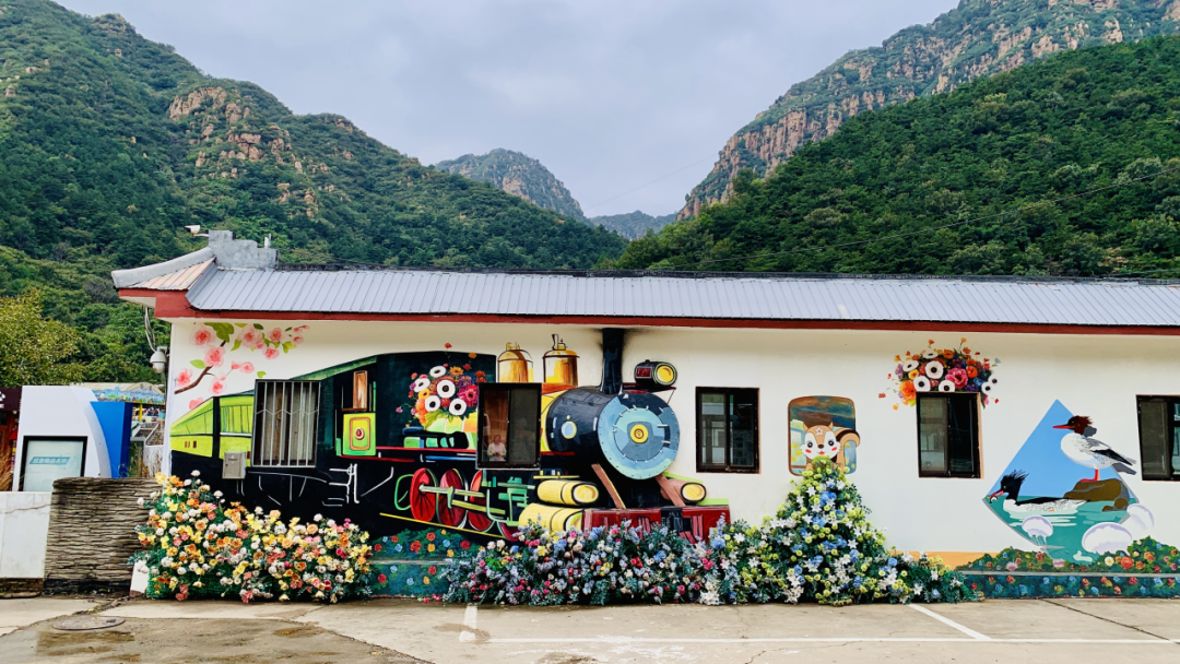 在黄松峪乡,幸福触手可及,美好俯拾皆是。石林峡景区原本朴素的外墙,摇身一变成为五彩斑斓的艺术画廊。这一变化,得益于黄松峪乡林长与园艺师的紧密配合。4月18日,黄松峪乡召开“一镇一花卉园,一镇一宠物园”工作部署会,在乡林长的统筹下,由园林绿化局组成的园艺师团队精心选择植物品种,在墙绘旁搭配烂漫盛放的鲜花,使五彩斑斓的艺术画廊与自然环境相得益彰。复古立体的火车、色彩艳丽的气球、憨态可掬的松鼠、振翅雄鹰等灵动的形象,每一笔都绘满了对生活的热爱,搭配着墙边烂漫盛放的鲜花,似乎在讲述着黄松峪乡百姓生活富足,邻里间守望相助,洋溢着浓厚的烟火气与幸福感,宛如梦幻之境。声名远扬的石林峡景区,奇峡险峰、碧水幽潭,是大自然慷慨的馈赠。如今,这些充满创意与温情的墙绘,吸引着来往石林峡景区的游客纷纷驻足,在带走美好回忆的同时,也见证了林长制引领、园艺师扮靓所带来的乡村风貌蝶变。