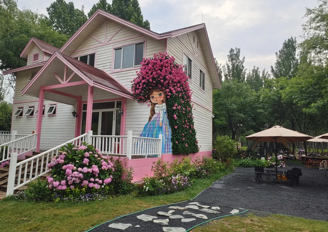 在平谷区总林长“一镇一花卉园”建设理念引领下,夏各庄镇级林长积极统筹协调,将南太务高速出口东侧闲置地块作为首批示范点,推动唐顿花园驿站顺利落地。项目以园林设计+建筑设计+动漫绘画小女孩的手法对闲置小木屋进行创意美学设计,打造出独具特色的“手绘小女孩风”网红驿站,在盘活沉睡资源的同时,为过路及本地群众提供休闲好去处。园里有35个绣球品种、20多种宿根低维护植物,在镇园艺师的科学规划和精心管护下,巧妙运用枯枝、落叶及旧轮胎等可再生材料,构建出四季可赏的生态花卉园,充分体现了低维护、可持续的生态设计理念。项目自4月26日开园到5月5日短短10天便吸引2万多人打卡分享迅速成为区域新晋网红地标。在区、镇两级林长的推动下,项目深度融合镇域农业特色,通过沉浸式花卉消费场景打造,创新探索农林文旅融合发展的新路径。如今,唐顿花园驿站不仅是服务过往群众与本地居民的重要休闲空间,更在各级林长与园艺师的共同呵护下,成为平谷区展示高大尚形象、推动产业融合、带动集体经济发展的鲜活样板,充分彰显了林长制与专业园艺力量在乡村振兴中的重要作用。
