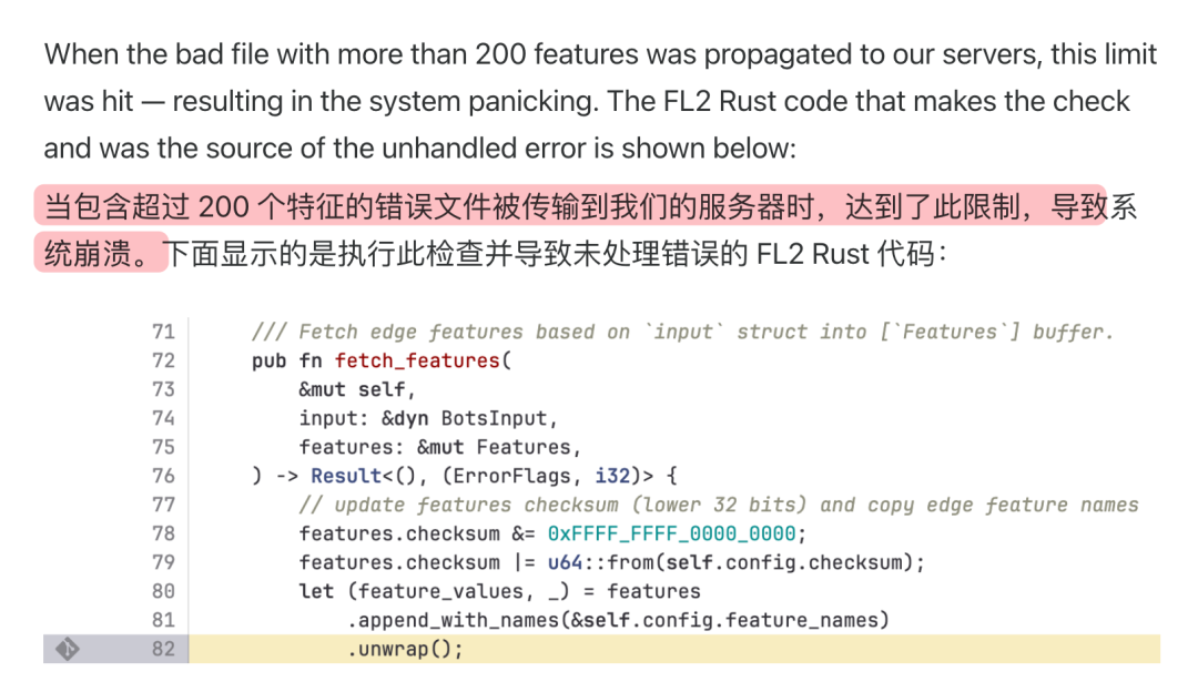 尴尬的是,Cloudflare在设计系统时,为了性能考虑,给特征文件设了个上限:最多200个特征。