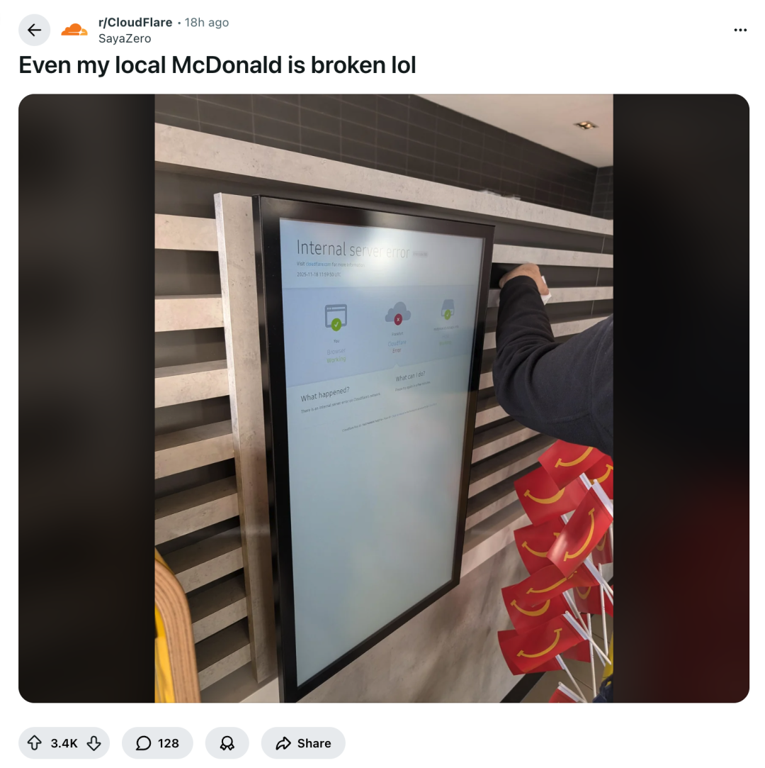 上个月AWS崩了,这个月Cloudflare崩了,过段时间说不定又轮到谁。