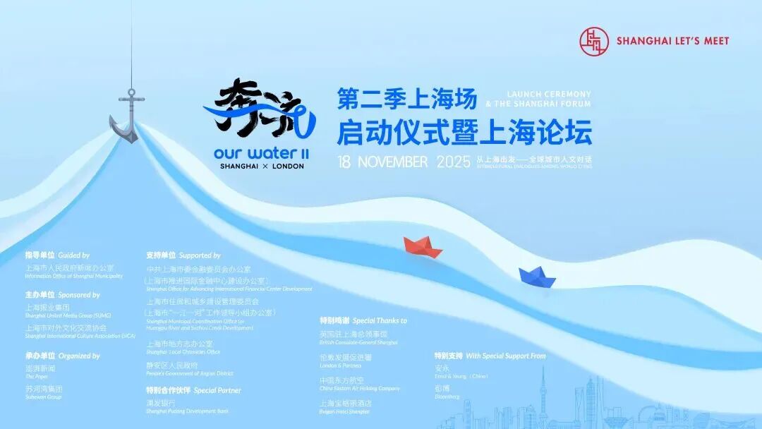 以水为媒的“奔流”之旅,从6月初的伦敦泰晤士河畔回到上海江河之畔。《奔流:从上海出发——全球城市人文对话》(以下简称《奔流》)第二季上海场启动仪式暨上海论坛于2025年11月18日,在上海总商会旧址成功举办。