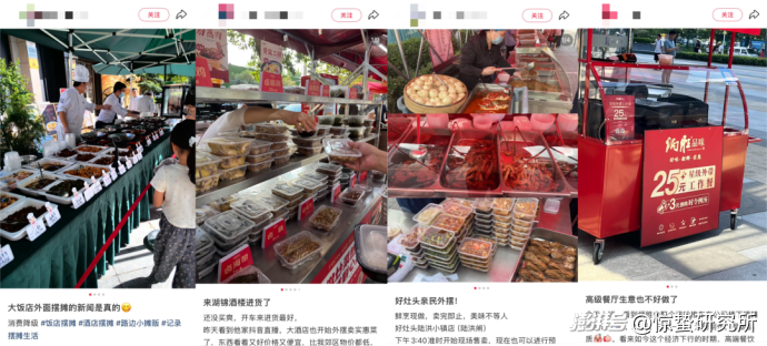 相对于五星级酒店,用星级美食和平民价格换取品牌曝光与潜在客源的经营逻辑,本就服务于日常聚餐的正餐餐厅,则是将主业以副业形式摆上街头,更像是对堂食困境的一种直接回应。