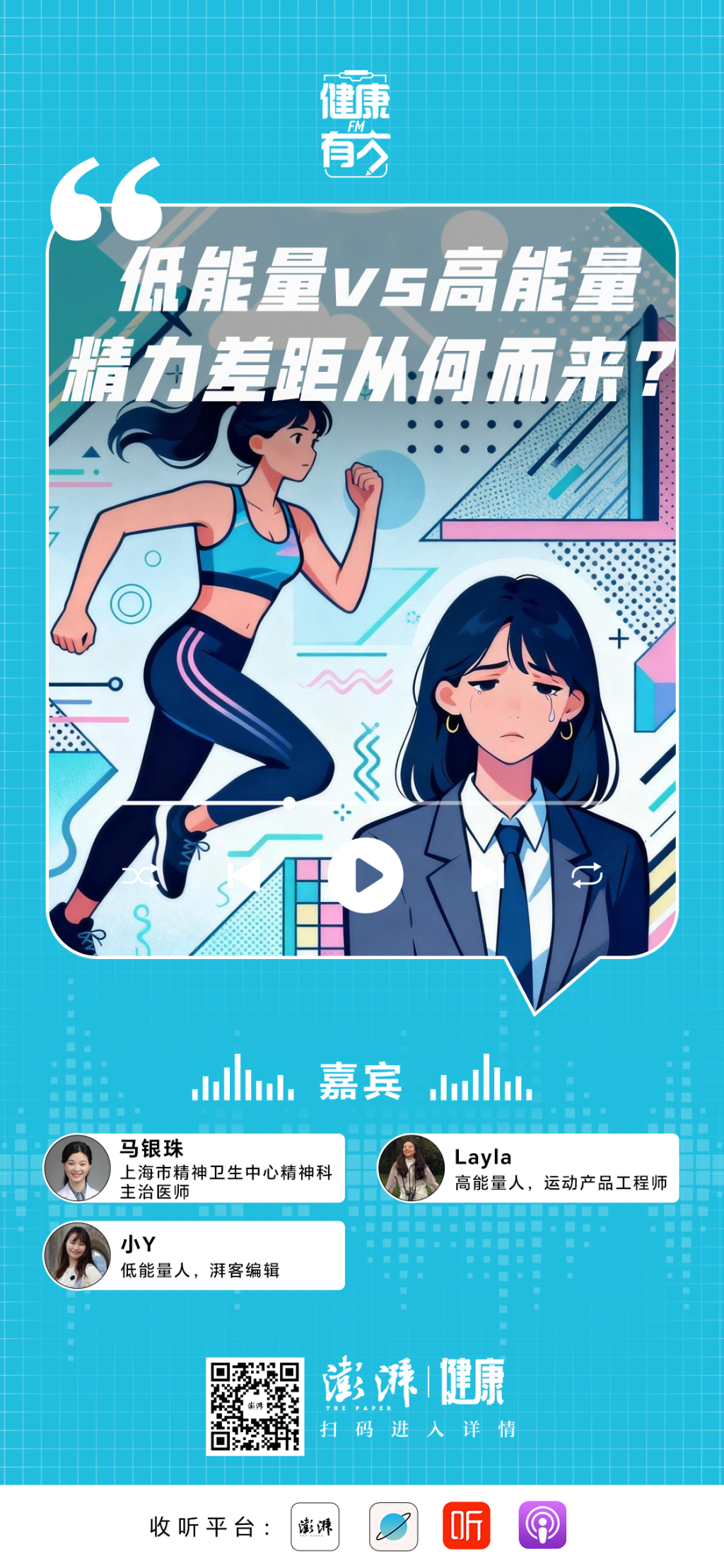 为什么人与人之间的精力差距如此巨大?这种差异背后是天赋、性格,还是生活方式的累积?在最新一期《健康有方FM》中,我们邀请了精神科主治医师,以及两位能量状态完全不同的嘉宾,共同讨论这一常见却鲜少被系统梳理的话题。