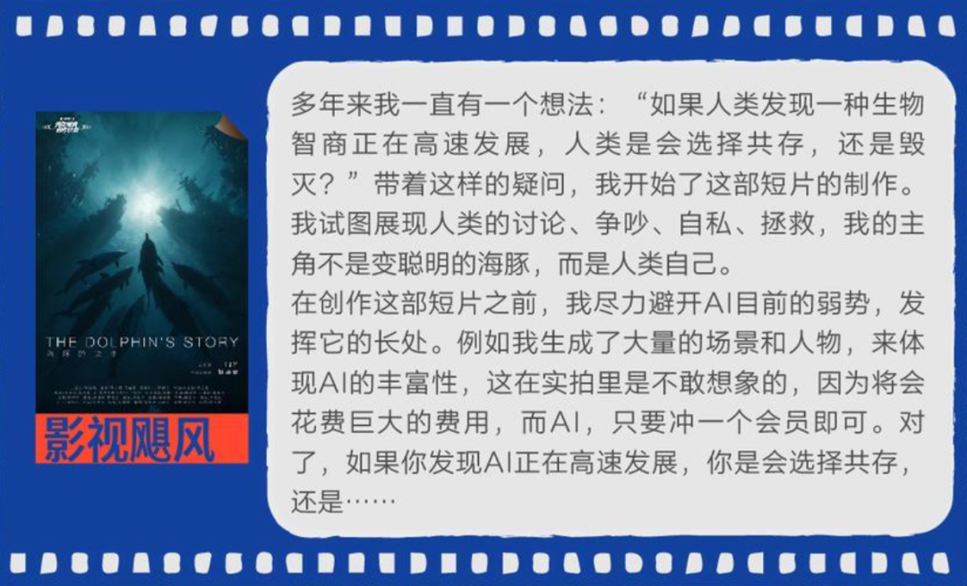 影视飓风团队与即梦AI合作的科幻短片《海豚的故事》完成度较高,如果海豚基因突变,智慧水平接近人类,会怎么样?资源抢夺、引发战争……
