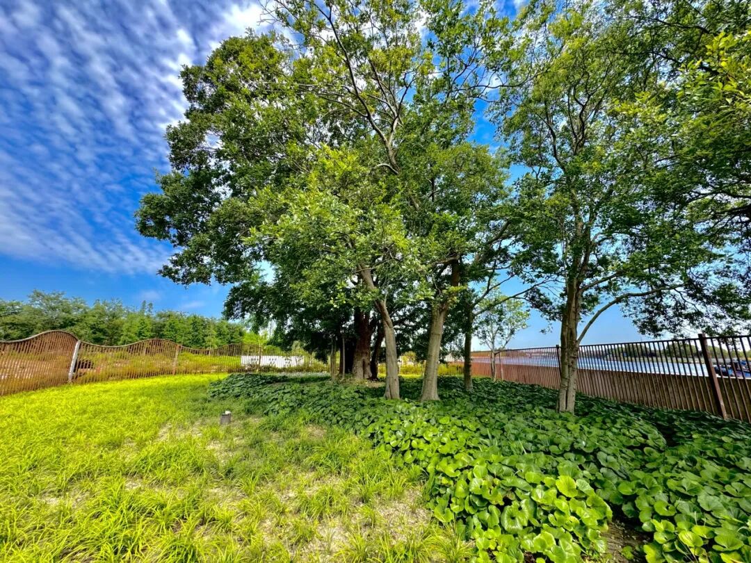 以石家浜水闸为起点,桥下灰白的闸墙浸着水痕,像被风揉皱的旧信纸。步道旁的休闲林地里,种植有蓝花草、南天竹、鼠尾草等植物,斑斓交错的草木似在互相低语。迎风骑行,惬意宁静,别有一番感受。