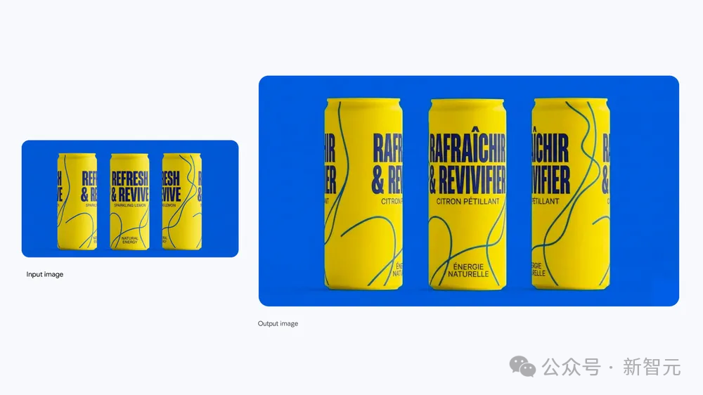 比如输入一张英文饮料广告的原图,NanoBananaPro直出法语版本。