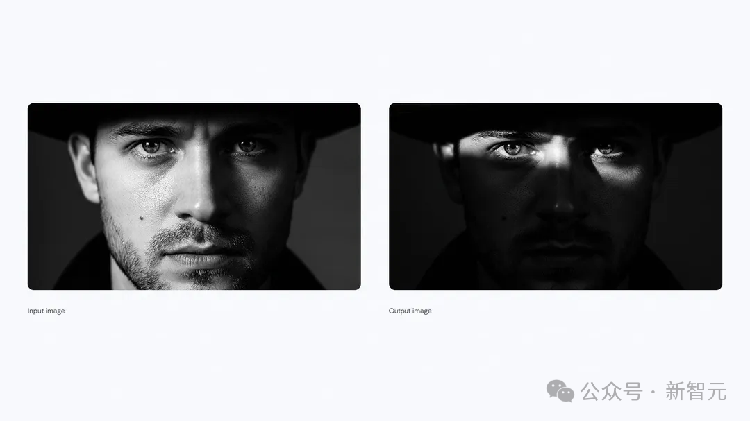 提示词:生成具有强烈明暗对照(chiaroscuro)效果的图像。该男子应保留其原始特征和表情。引入刺眼的定向光,似乎来自上方并略微偏左,在脸上投下深邃、清晰的阴影。只有几缕光照亮他的眼睛和颧骨,脸部的其余部分处于深深的阴影中