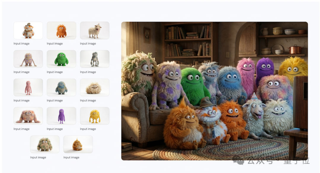 招牌技能多个图片混合,这次最多支持14张输入图片,全都能保持一致性,多个人物角色和复杂场景也不惧。