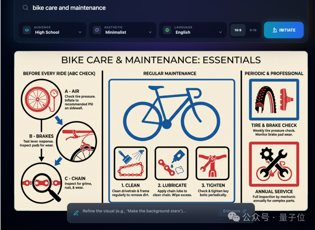 比如生成一张自行车维修保养注意事项海报。