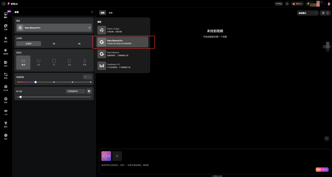 当然,除了现在最热门的NanobananaPro之外,拍我AI上还做了不少整合,在生图这块,接入了先前最热门的Qwen-image、Seedream4.0和NanoBanana这些模型。