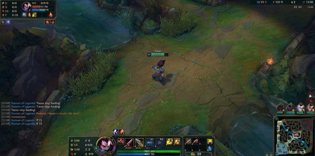 一张英雄联盟截图,玩亚索,中路附近,召唤师技能是闪现引燃,出装是多兰剑无尽,右上角显示比分16VS9,战绩0/9/0,补兵2,时间12:00