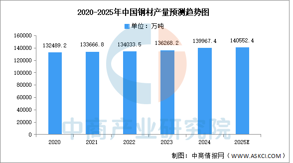 随着工业生产稳步回升,国内制造业用钢需求上升,我国钢材产量呈现平稳增长的趋势。中商产业研究院发布的《2025-2030年中国钢材行业市场分析及发展趋势预测报告》显示,2024年中国钢材累计产量达139967.4万吨,较上年增长1.1%。中商产业研究院分析师预测,2025年中国钢材产量将达到140552.4万吨。
