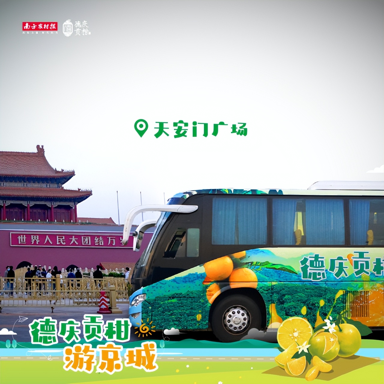 △“德庆贡柑号”创意巴士驶过长安街。资料图