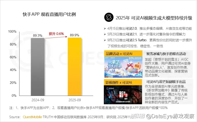 快手则强化“短视频直播一体化”,并通过“可灵AI”视频生成大模型为创作者提供创新工具,提升内容创作的多样性和效率。