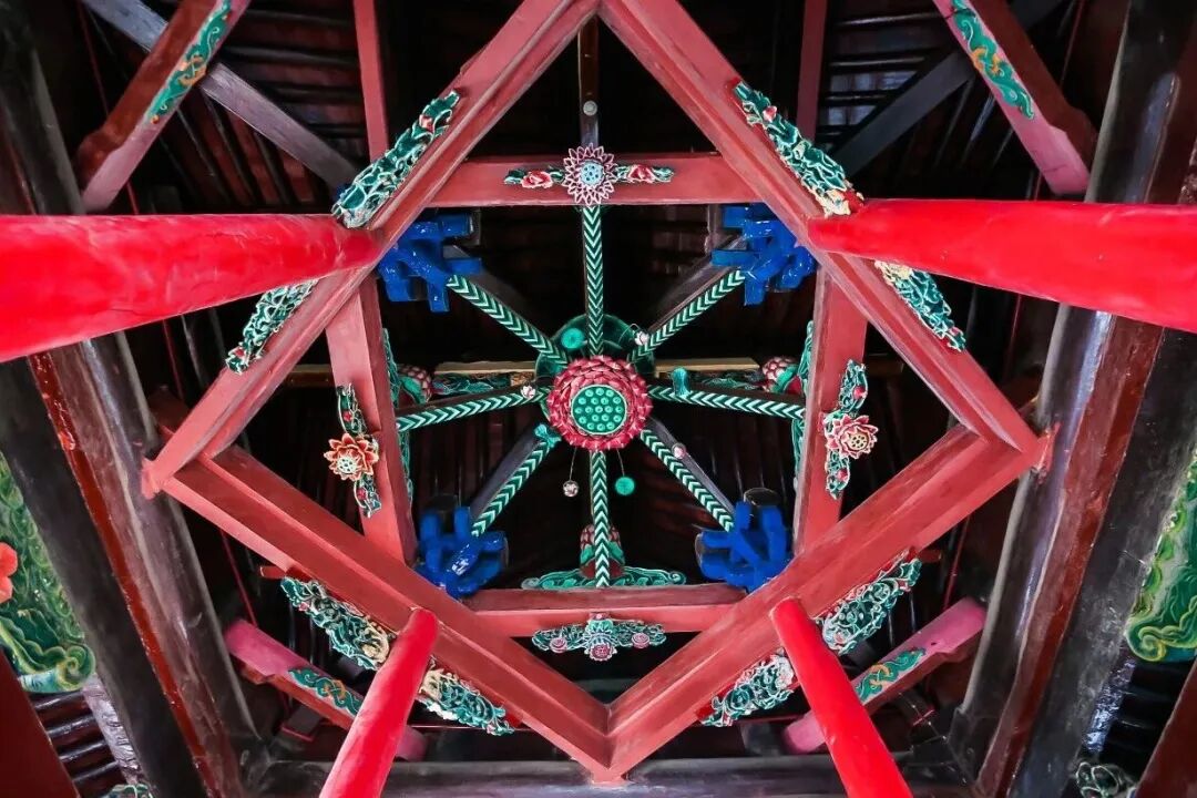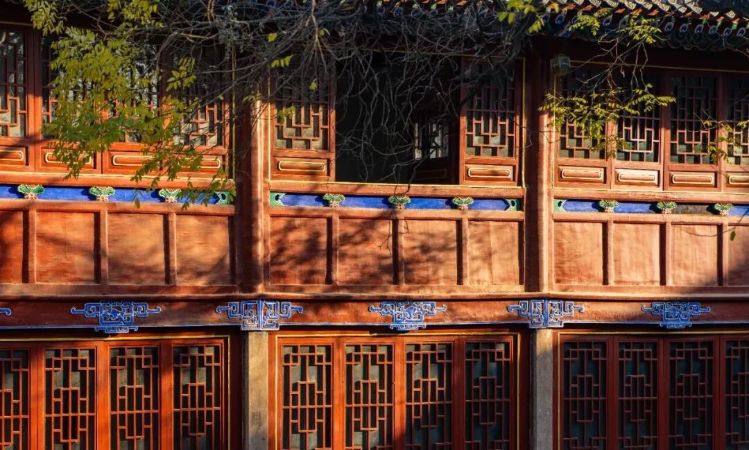 参照明清官式营造法则,朱红廊柱与青绿梁枋在雪色中愈发分明,檐下“青绿叠晕棱间装”的彩绘技法,让五行学说中的木德之色在冬日依然鲜活。