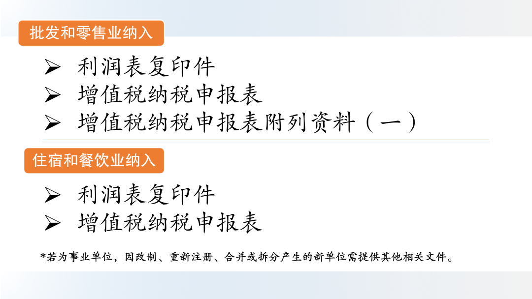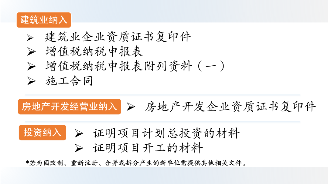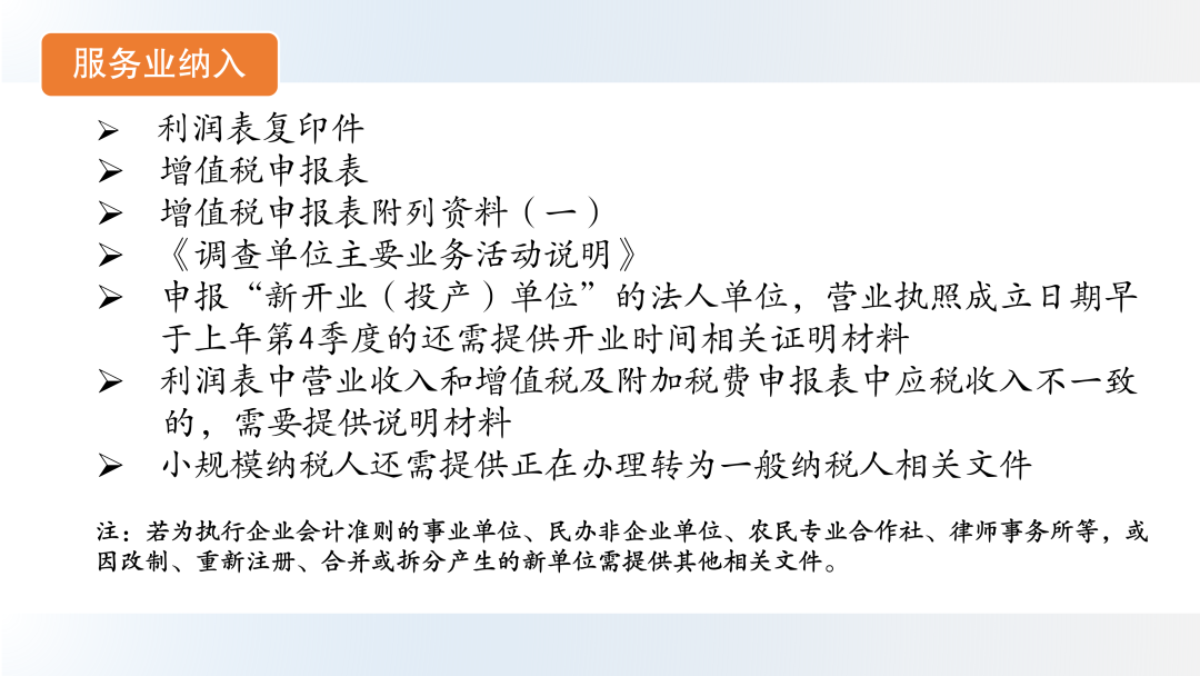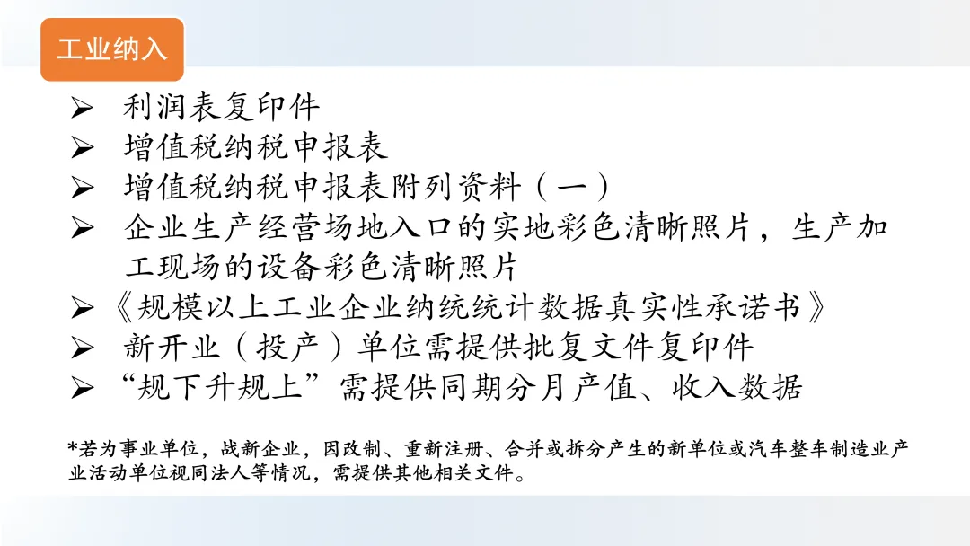 各行业纳统材料清单