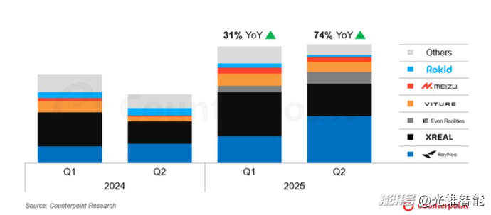 IDC在2025年上半年的报告中提到,“2025年二季度智能眼镜市场出货渠道中,零售渠道(第三方渠道)出货量占比同比提升4.0%,直营店渠道(官方商城)占比同比提升4.4%”。
