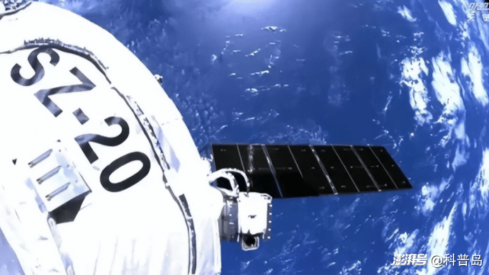 对接在空间站上的神舟二十号飞船 图片来源:央视新闻