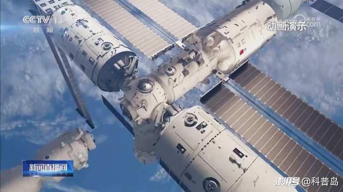 神舟二十二号对接的空间站节点舱前向对接口 图片来源:央视新闻截图
