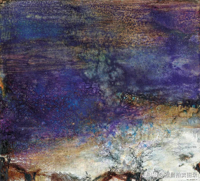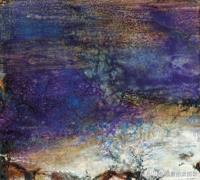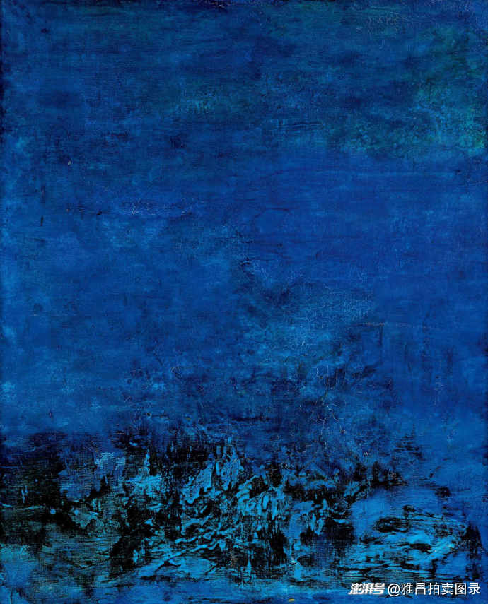谢景兰《蓝月》完成于1967至1969年,现场以240万港元落槌,288万港元成交。本作为谢景兰自书写性抽象走向山水精神的重要转捩之作,作品以不同层次的宝蓝、靛蓝、钴蓝、天青铺满整个画面,令画中的天地山川皆浸染在无尽的蓝彩中。在纷扰窘迫的时代里,以艺术再造一个抚慰观者心灵的理想境界。