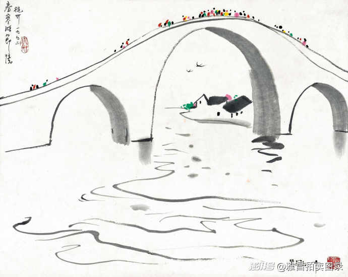 吴冠中珍罕拱宸桥主题之精品《春寒时节忆杭州》以186万港元成交。本作描绘建于明代的杭州知名石桥“拱宸桥”一景,综观艺术家毕生创作,该主题之作仅有四件,当中两件已分别为北京中国美术馆与香港艺术馆收藏,而此作为四者中尺幅最大、年份最早者,可见其珍稀性。