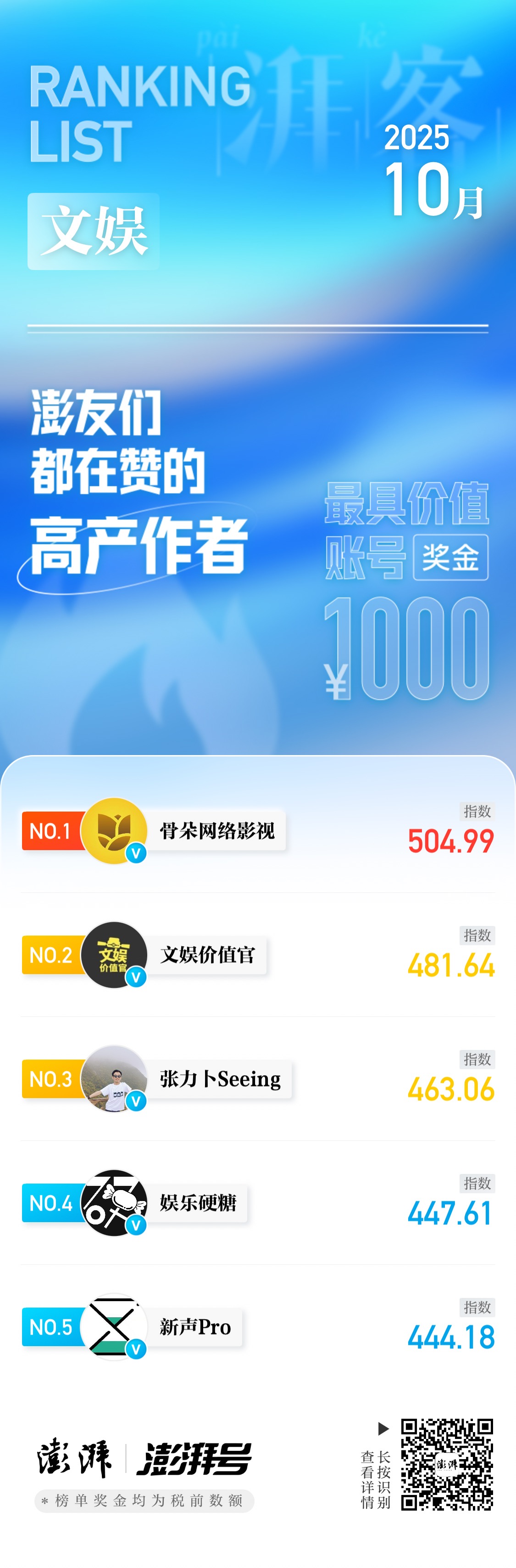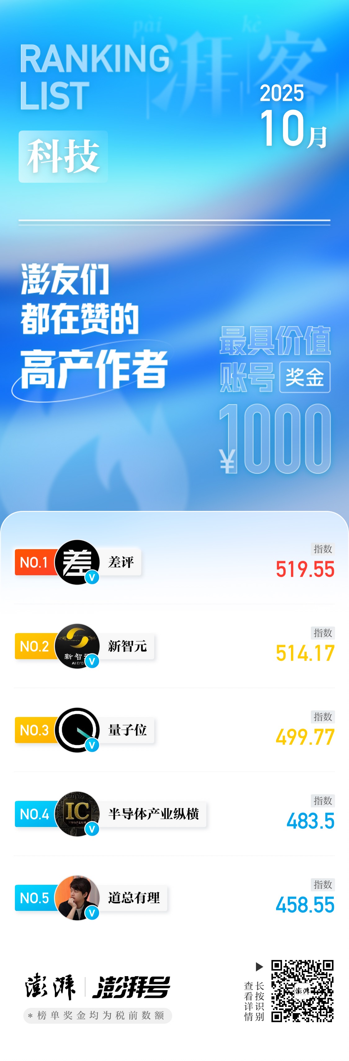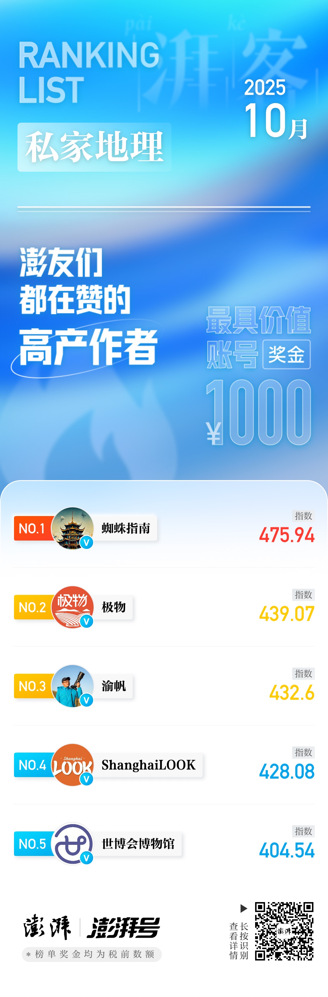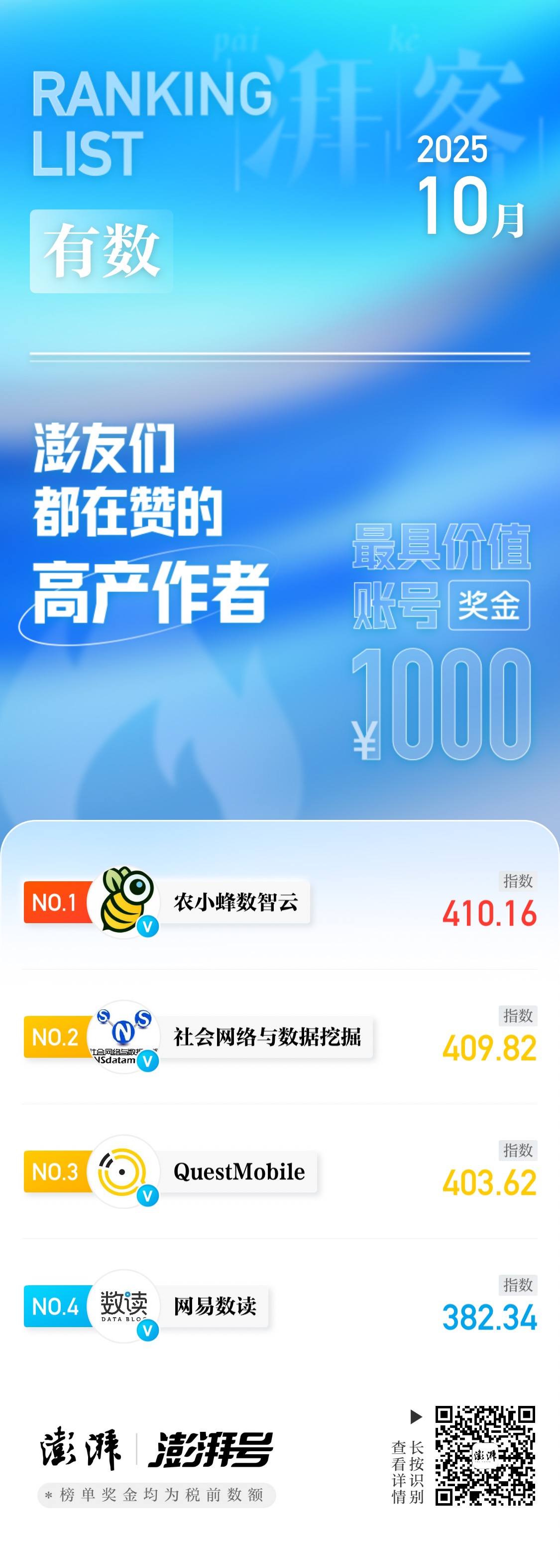 10月「湃客指数月榜」公布!