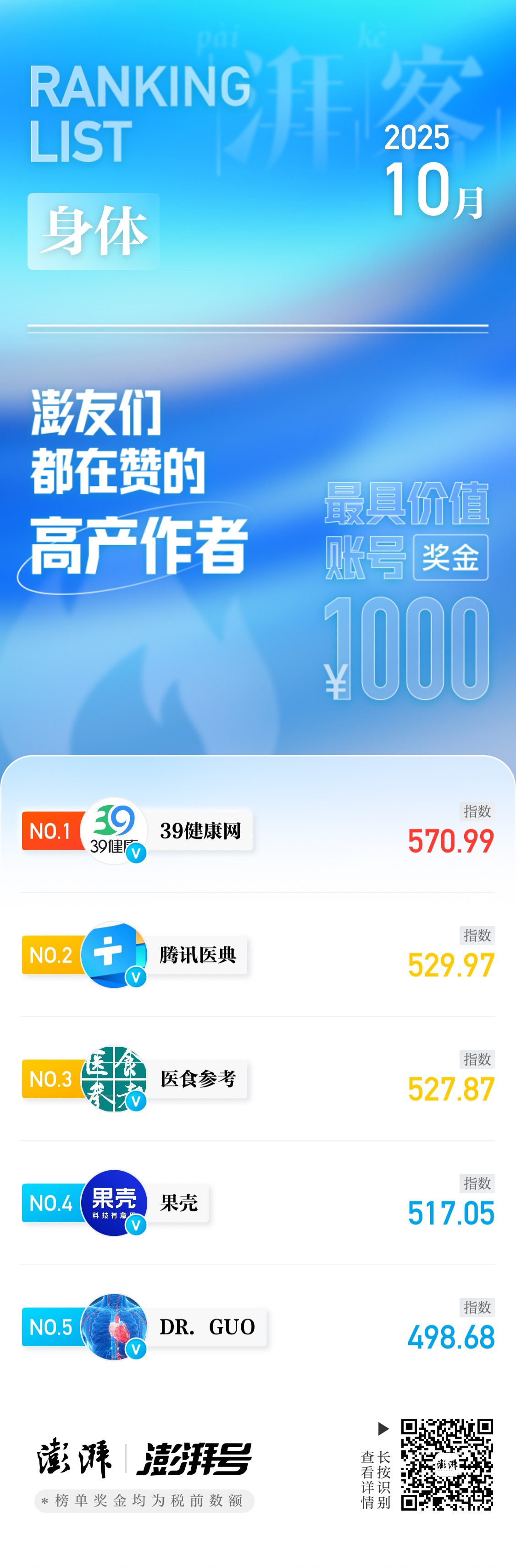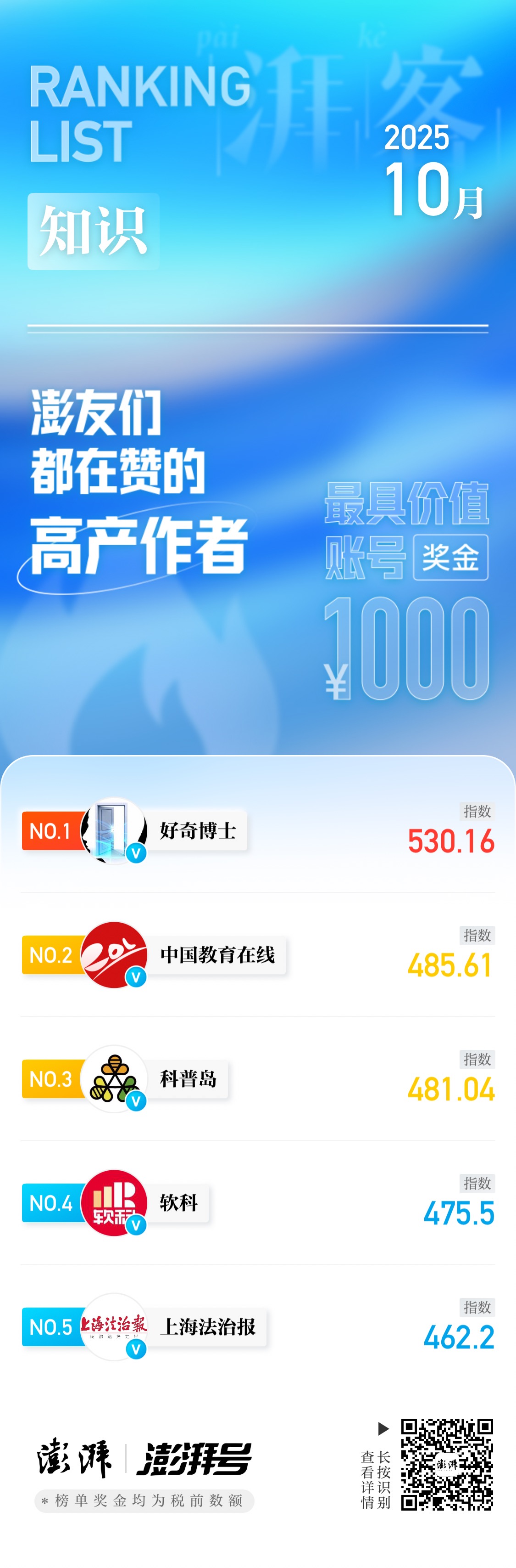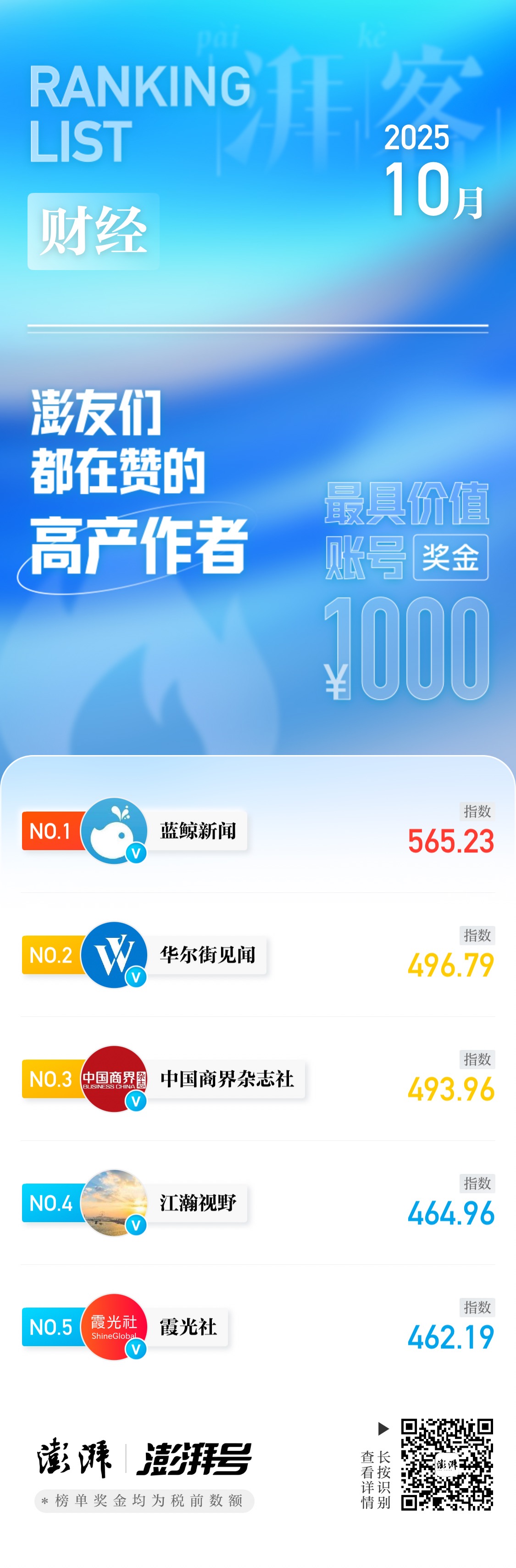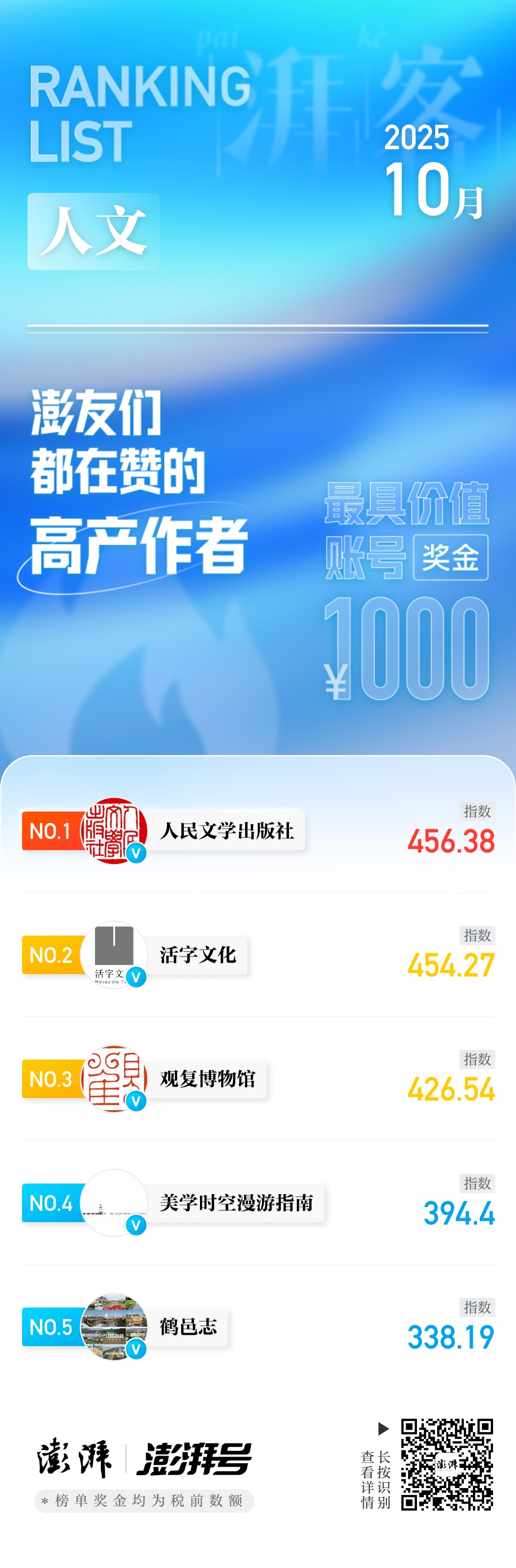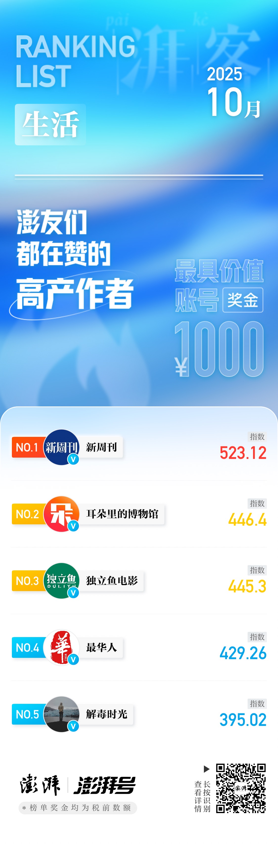湃客指数10月榜|澎友们都在赞的高产作者