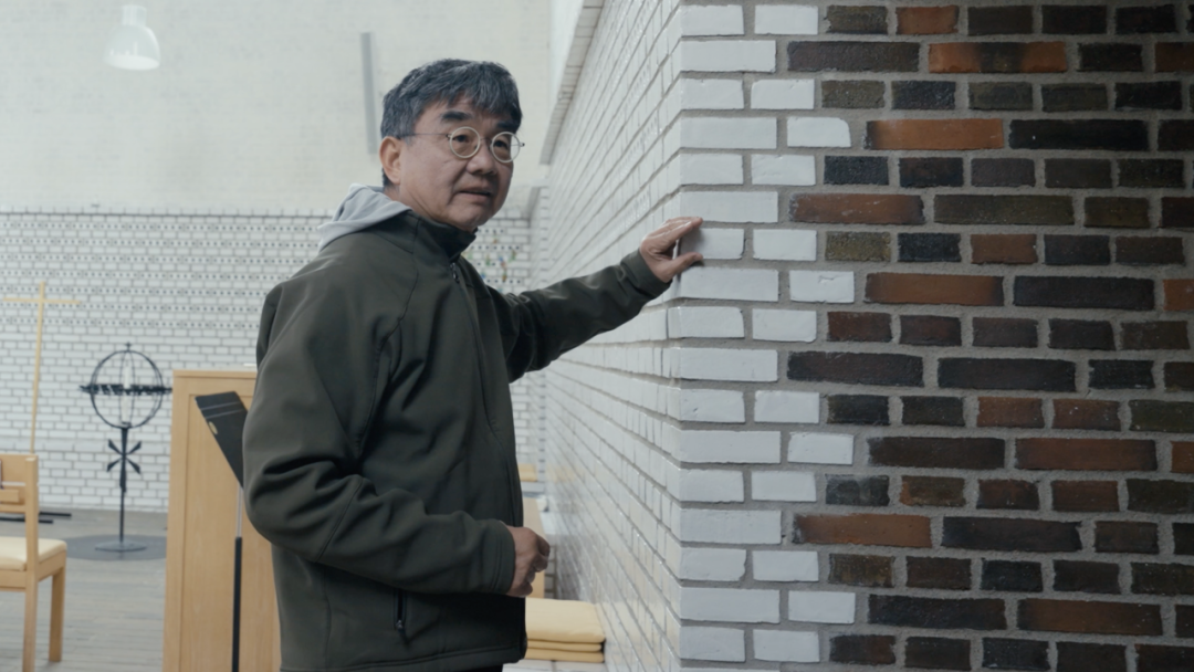 张永和触摸阿尔斯塔教堂的墙砖 ©i-Talk