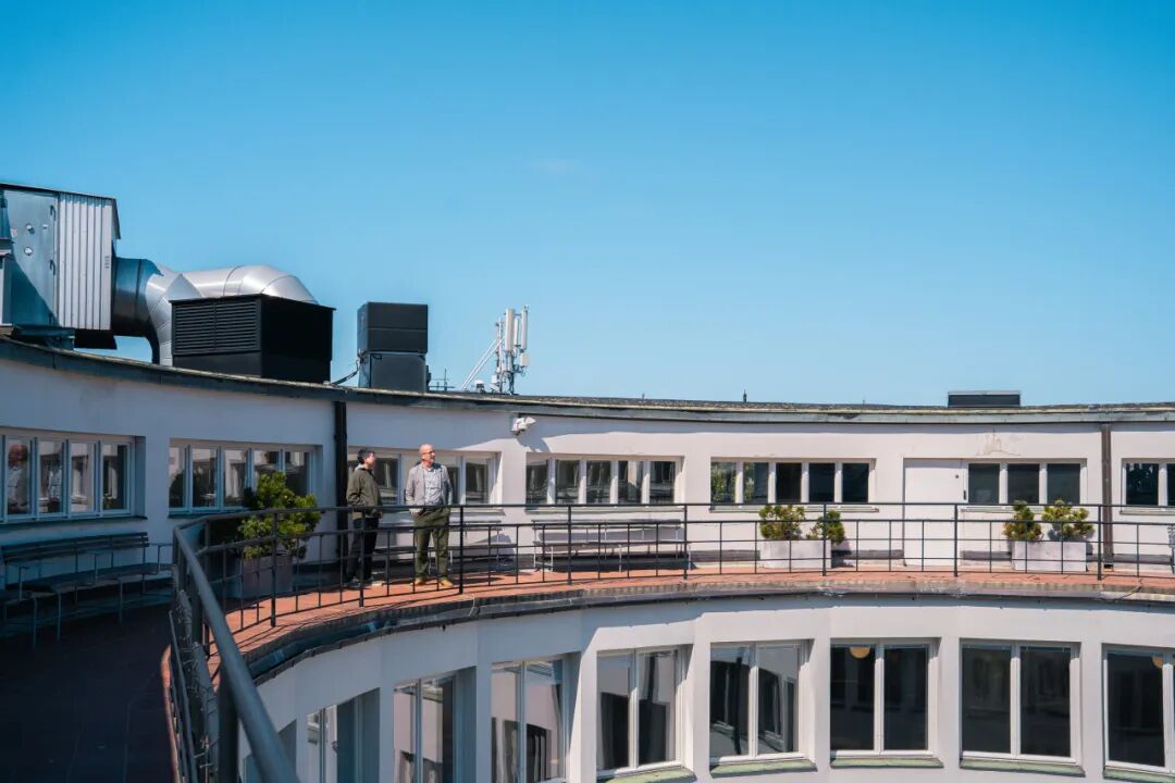 张永和与建筑评论家拉斯穆斯·瓦恩在顶层的内环露台上