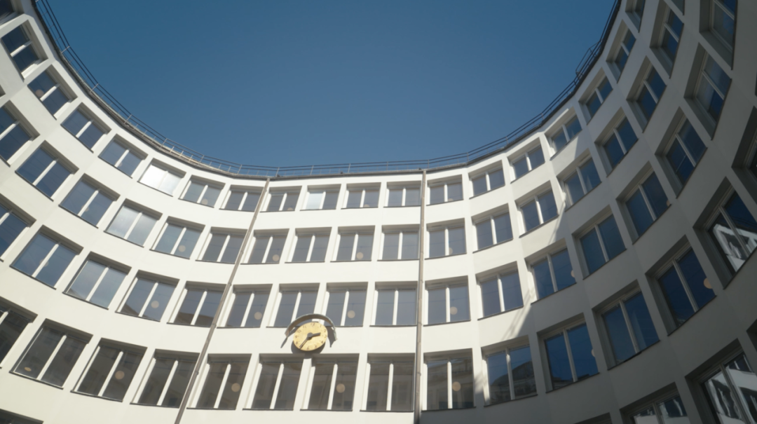 穿越狭小门廊才能到达庭院的斯德哥尔摩国家社保大楼内部
