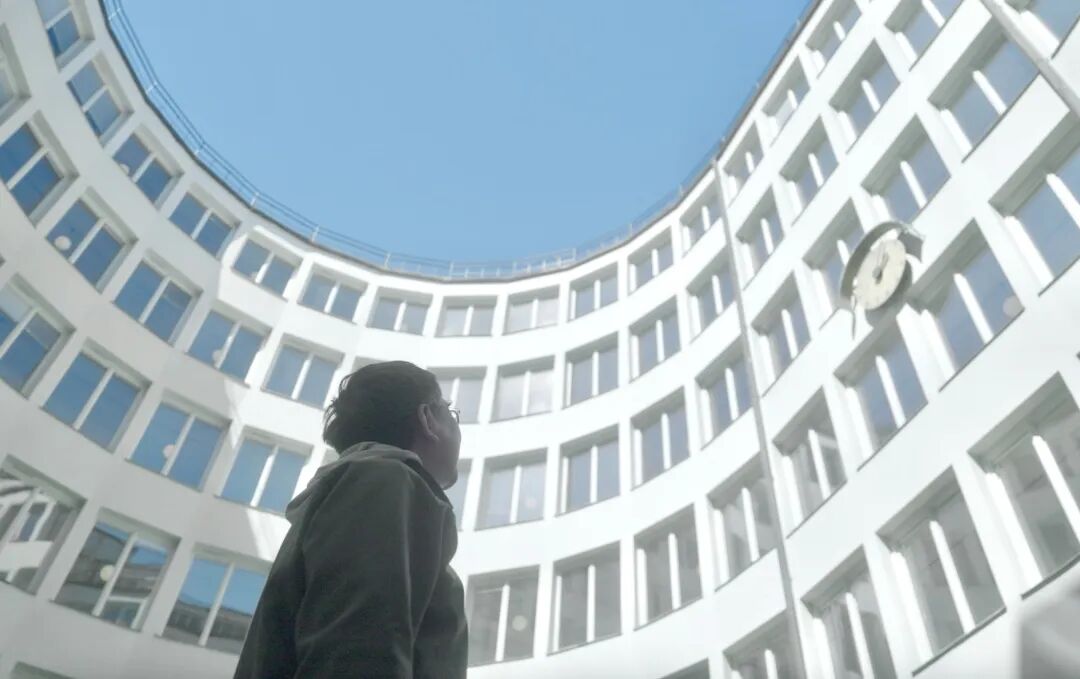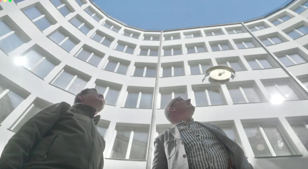 在“约会”的最后,张永和决定探访期待已久的斯德哥尔摩国家社保大楼(National Social Insurance Board),这座建筑由 Lewerentz 在 45 岁时设计,张永和想“确认一下自己原来的想象是不是对的”。建筑外观呈现为纯净的正方体,人们需要穿越狭小的门廊步入开阔的椭圆形庭院,才能通过中轴台阶进入建筑内部。