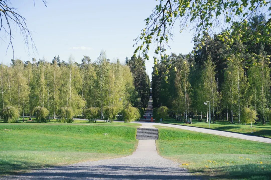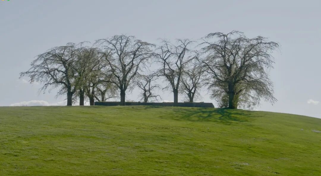 其中,刚刚 29 岁的 Lewerentz 设计的“复活礼拜堂”(Chapel of Resurrection)将传统门廊侧摆,由此连接着庄严肃穆的主轴线——桦树、松树和云杉夹道而成的“七泉之路”(Seven Springs Way),通向他设计的“冥想之丘”(The Meditation Grove)。那是一座用场地原有树林构建而成的“教堂”,这样一来,北欧林地的记忆就成为墓园的精神核心。