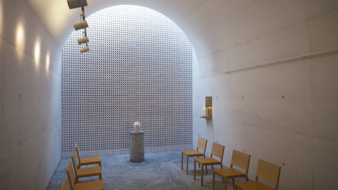 在这座庄重而实用的建筑中,每年要完成 4000 多场遗体火化,约占瑞典全国总数的 1/5。火葬场中的 6 位工作人员与前来参与丧葬仪式的人时常沐浴在阳光之中,转头就能望见庭院外的树影,即使身在室内也有一种户外的开阔之感。在神往的片刻,人们感到一种“自己与环境融为一体”的宁静,这是极具瑞典特色的生死观。
